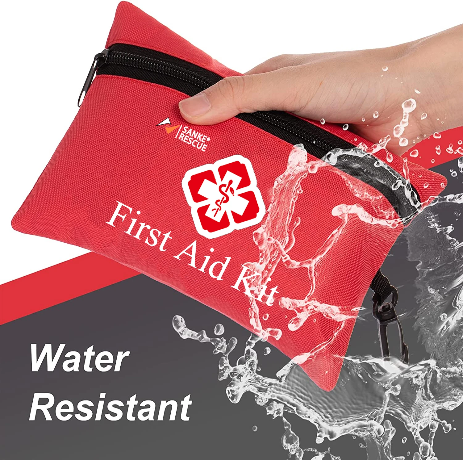 Everything you need is in this kit! Fully packed with 330 professional medical supplies – all kinds of bandages, CPR face shield, gloves,pads, Pill box,tourniquet,compass, etc. Meets international medical standards, 100% latex free.