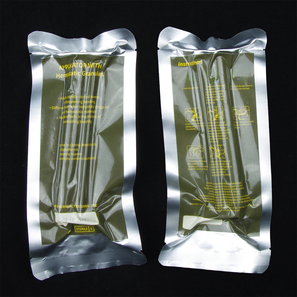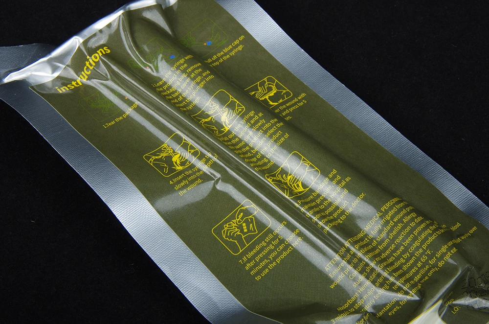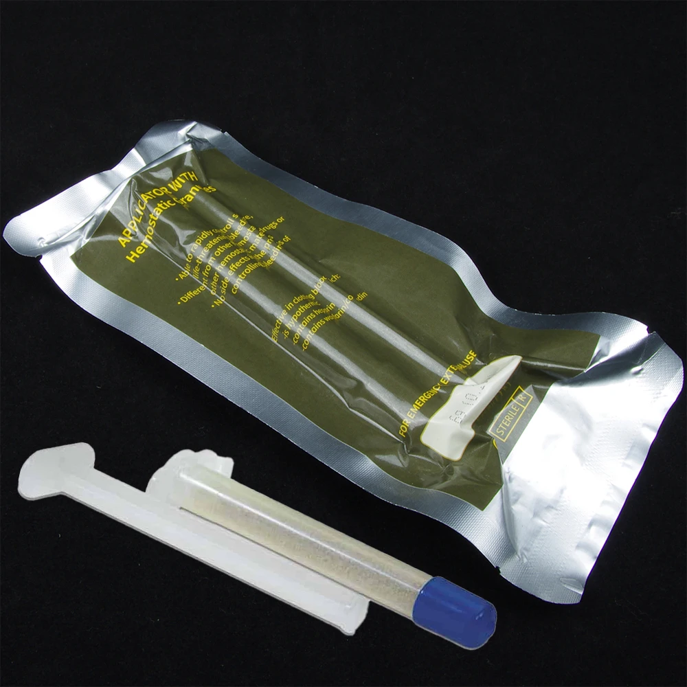 Its low-profile packaging enables chitosanase to be easily integrated into existing First Aid Kits. Hemostatic Granules follows the MARCH mnemonic in a color-coded, trauma treatment system, distinctly packaged with icon identifiers to treat the five leading causes of preventable death following traumatic injury.