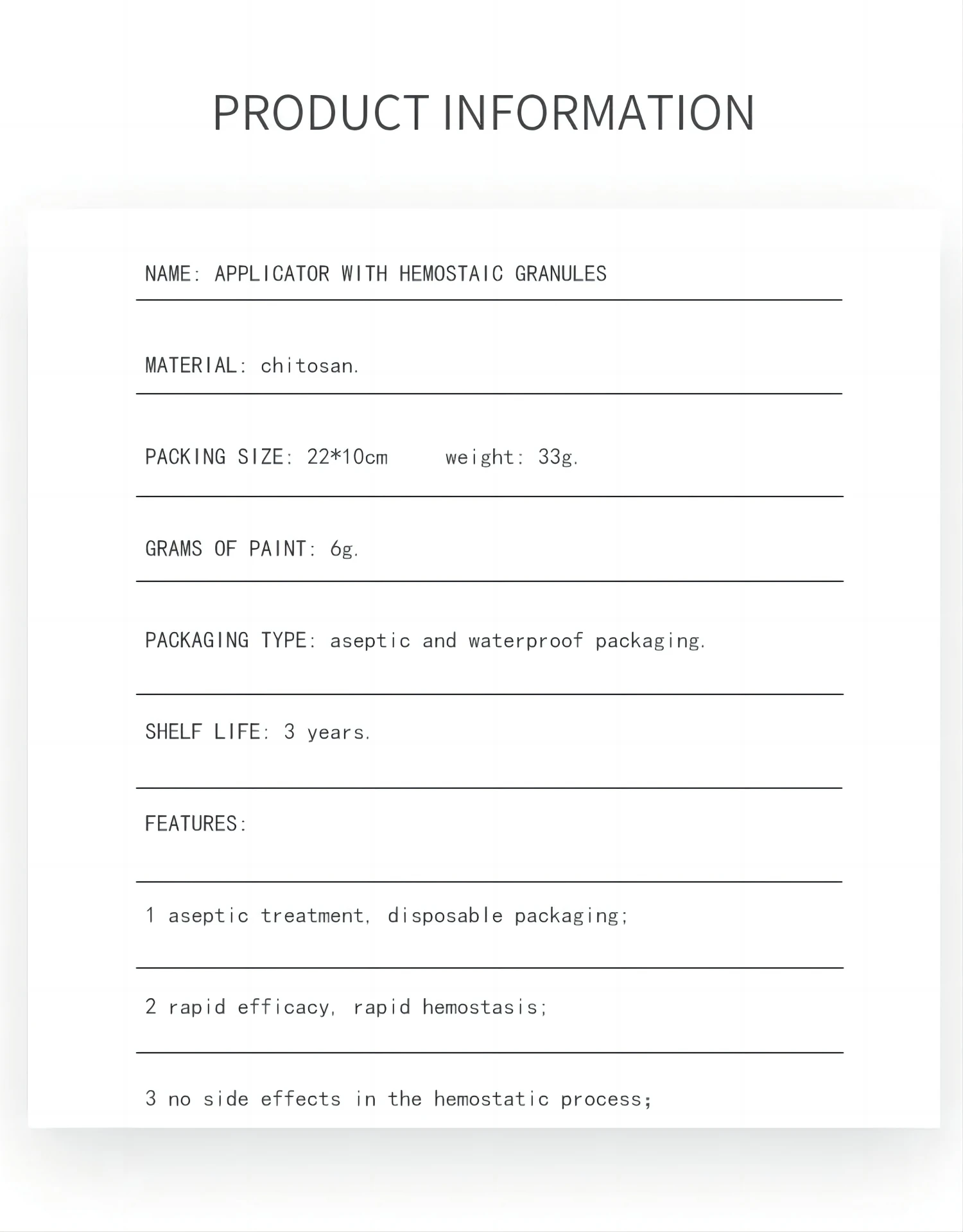However, it should be noted that the hemostatic effect of Chitosan Granules is not omnipotent. For serious bleeding situations, prompt