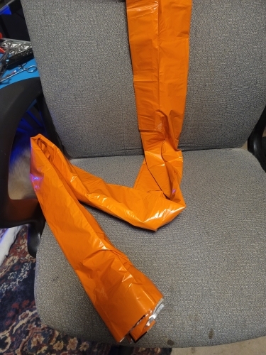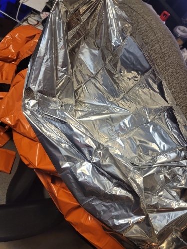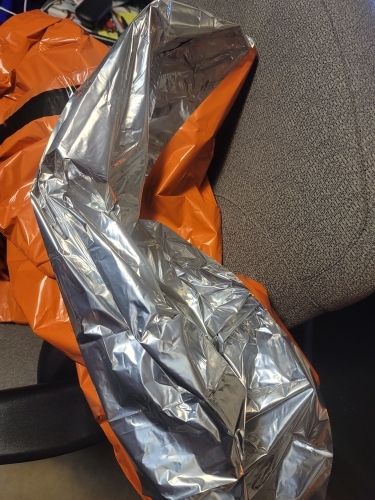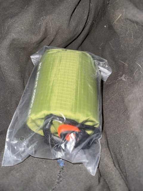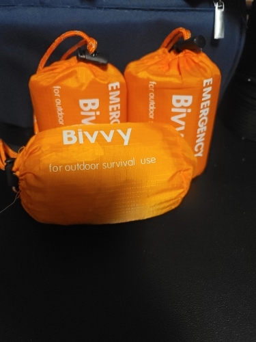 I ordered a few of these survival sleeping bags to have and hopefully never use! I have used one of these once in the past for a very uncomfortable experience. As I survived, it worked. The emergency bag is light, rolls up small, and should be in every pack. I took one out as photographed, and it was a project to get back in bivvy.