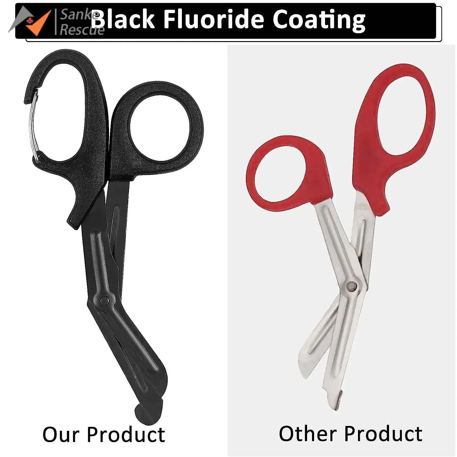 HIGH-QUALITY: Bandage scissors made of stainless steel reinforced with black fluoride coating, sharp durable. High impact handles, lasts for years. It has a curved tip that ensures that no one will accidentally cut by the blade’s tip.
